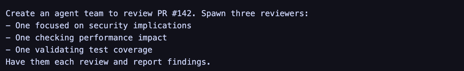 - 팀 요청: 병렬 작업의 이점이 있는 작업을 제공하고 명시적으로 에이전트 팀을 요청한다. Claude는 지시에 따라 팀을 만든다.
