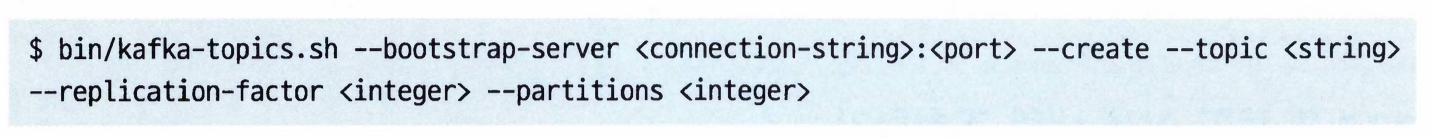 명령을 사용해서 새로운 토픽을 생성할 수 있다.- 생성할 떄는 3개의 필 수 인수가 있다.
