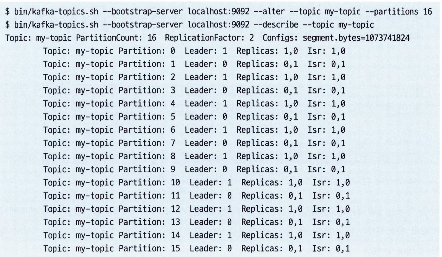 - 만약 파티션의 수를 줄여야 한다면, 토픽을 삭제하고 다시 만들거나 새로운 버전의 토픽을 생성해서 모든 쓰기 트래픽을 새 토픽으로 몰아주는 것을 권장한다.