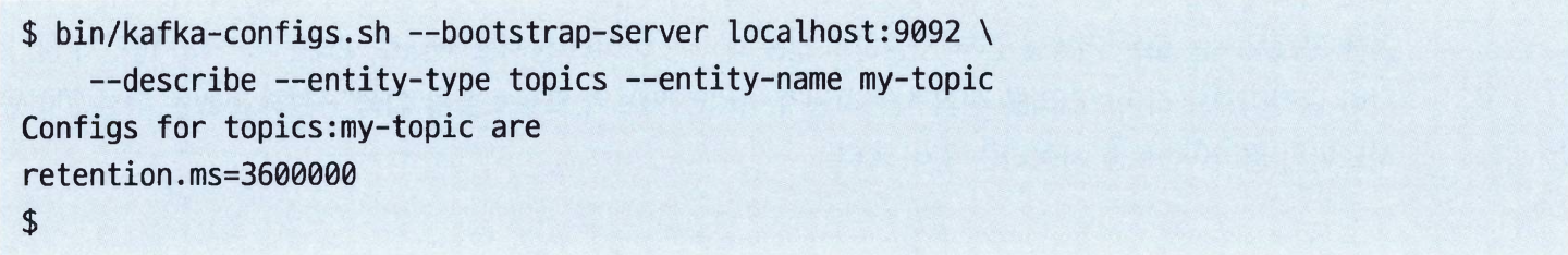 : 설정 중 클러스터 기본값을 재정의한 것이 있는 토픽들을 보여준다.--exclude-internal