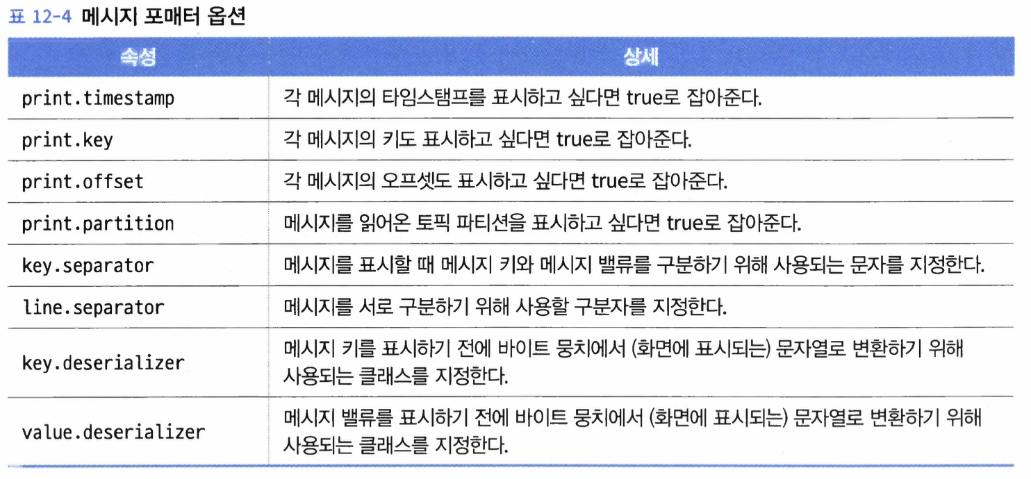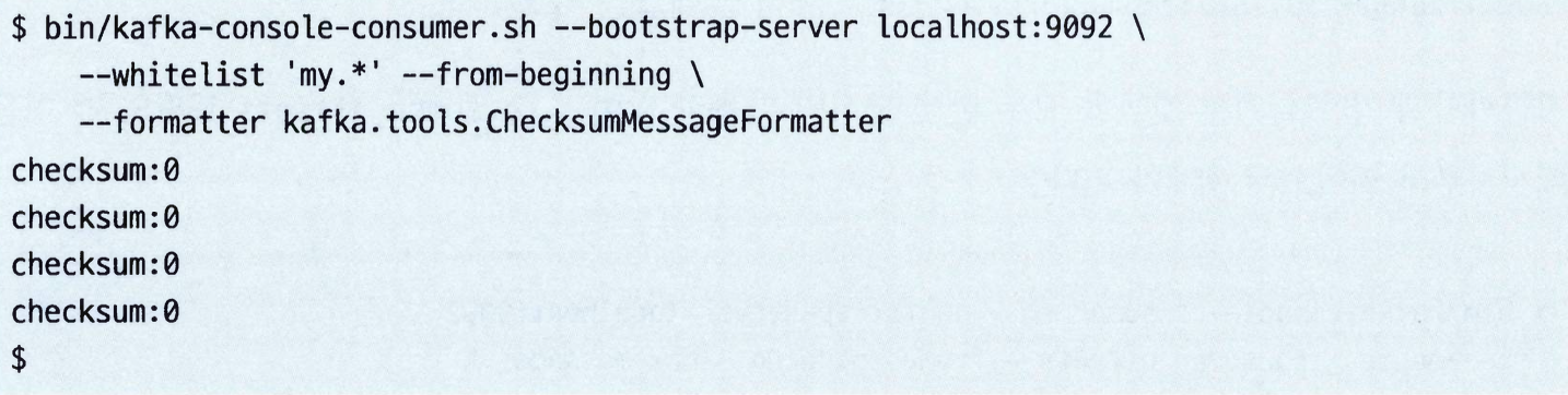 : 메시지를 읽어오되 아무것도 출력하지 않는다.kafka.tools.DefaultMessageFormatter