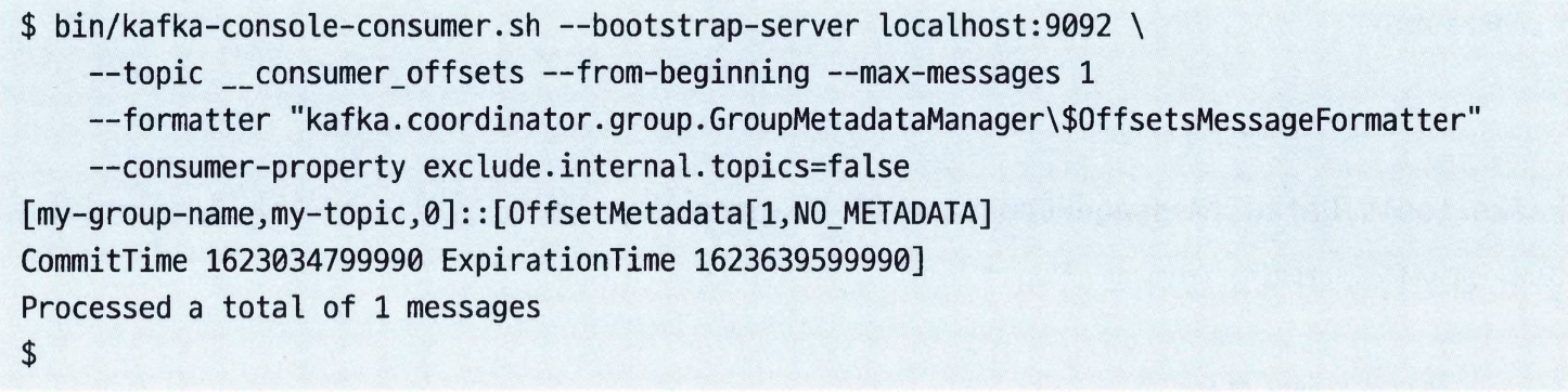- 클러스터의 컨슈머 그룹별로 커밋된 오프셋을 확인해봐야 하는 경우가 있다. 이 때, 콘솔 컨슈머를 사용해서