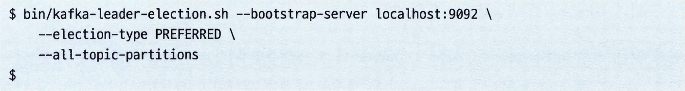 - 클러스터 내 모든 선호 레플리카 선출을 시작하는 명령은 다음과 같다.