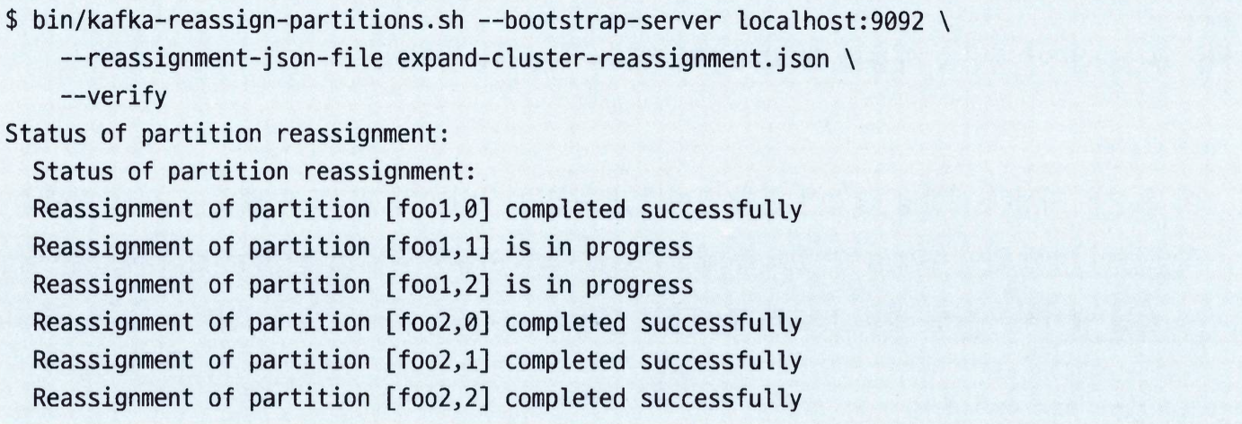- 지정된 파티션 레플리카를 새로운 브로커에 재할당하는 작업을 시작한다.