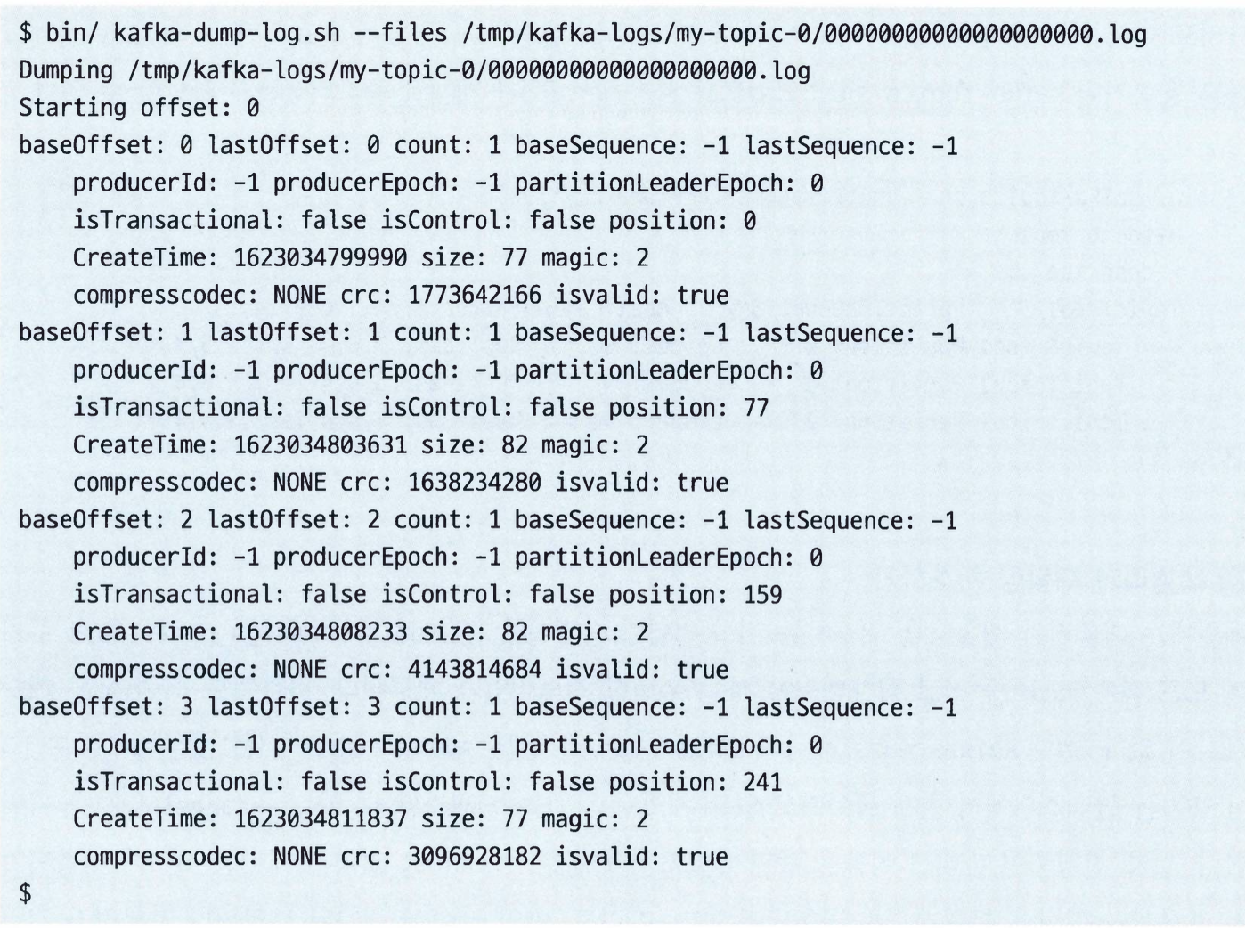 툴은 파티션의 로그 세그먼트들을 열어볼 때 사용하는 툴이다.- 이 툴을 사용하면 토픽을 컨슈머로 읽어올 필요 없이 각각의 메시지를 바로 열어볼 수 있다.