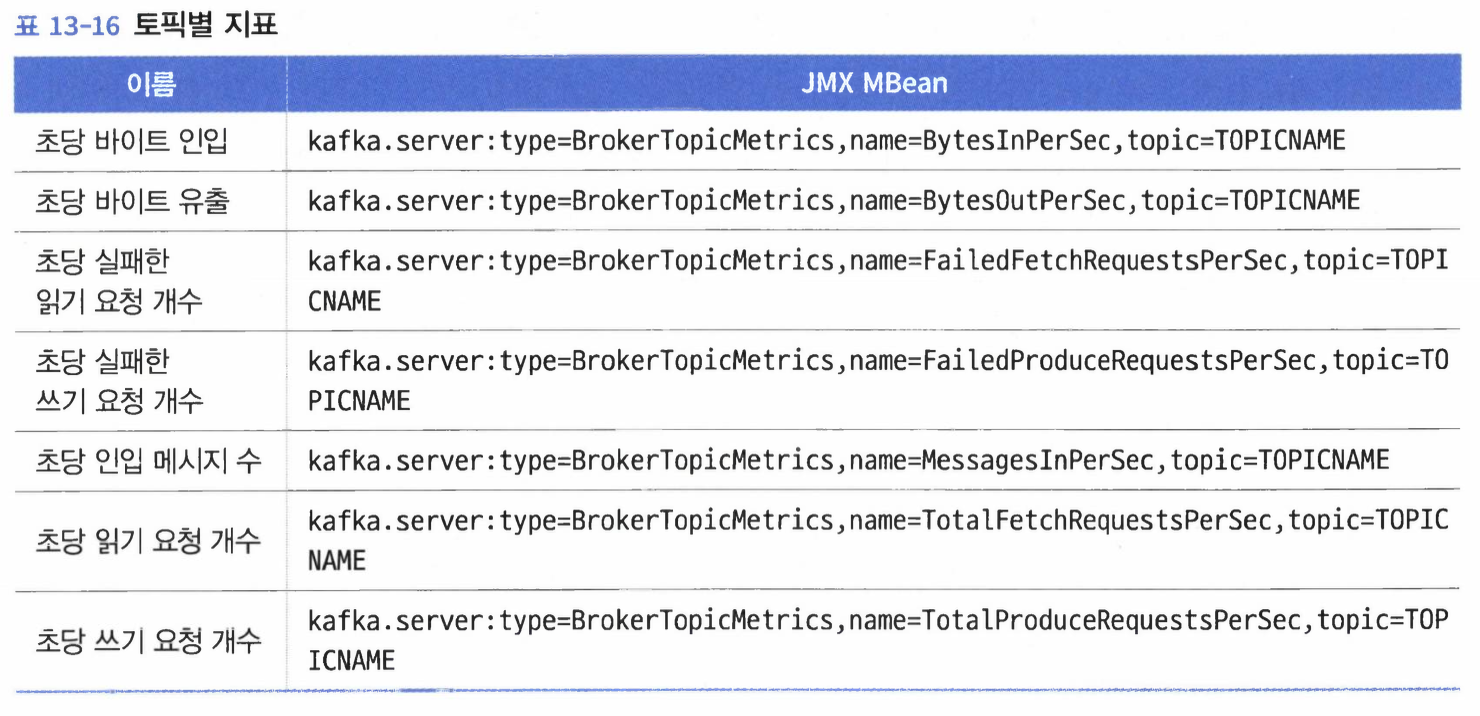 - 토픽별 지표는 특정한 문제의 원인을 찾는데 가장 많이 사용된다.