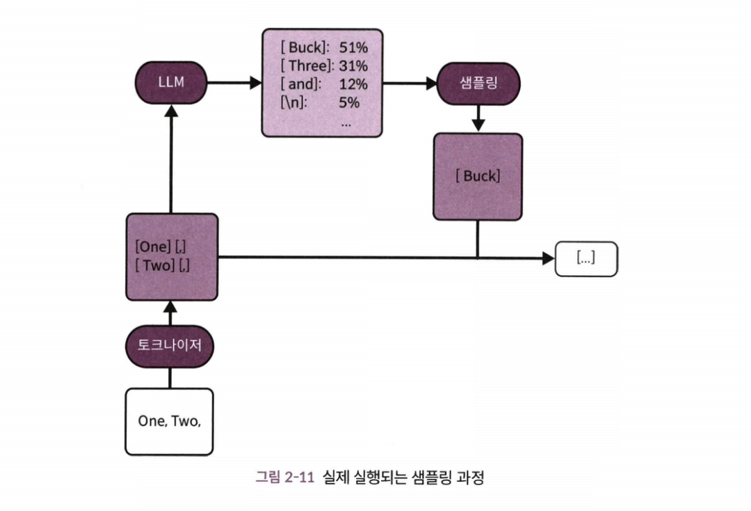 - 실제 토큰을 선택하는 내부 프로세스를 샘플링리라고 한다.