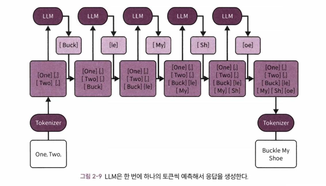 - LLM은 일련의 토큰을 생성하고, 이는 다시 텍스트로 변환된 다음 사용자에게 반환된다.