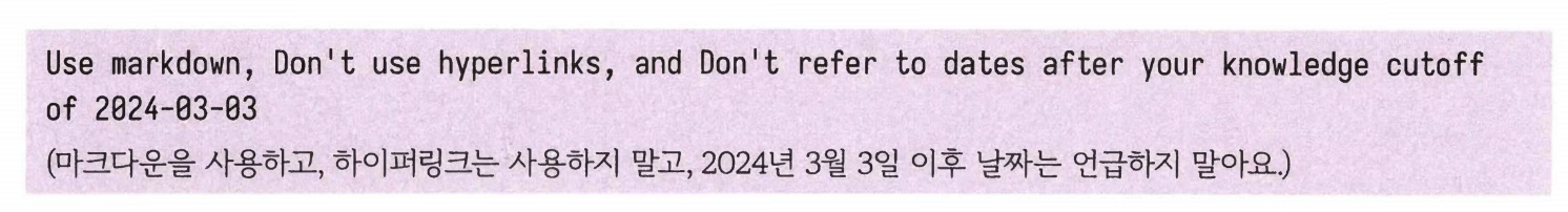 - 제로샷 프럼프트: 예제 없이 명시적 지시 사항만 제공되는 프롬프트