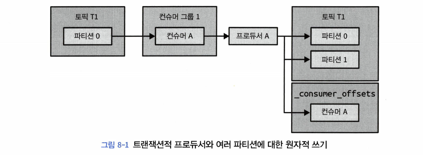 이러한 작동을 지원하기 위해, 카프카 트랜잭션은 원자적 다수 파티션 쓰기(atomic multipartition write) 기능을 도입했다.