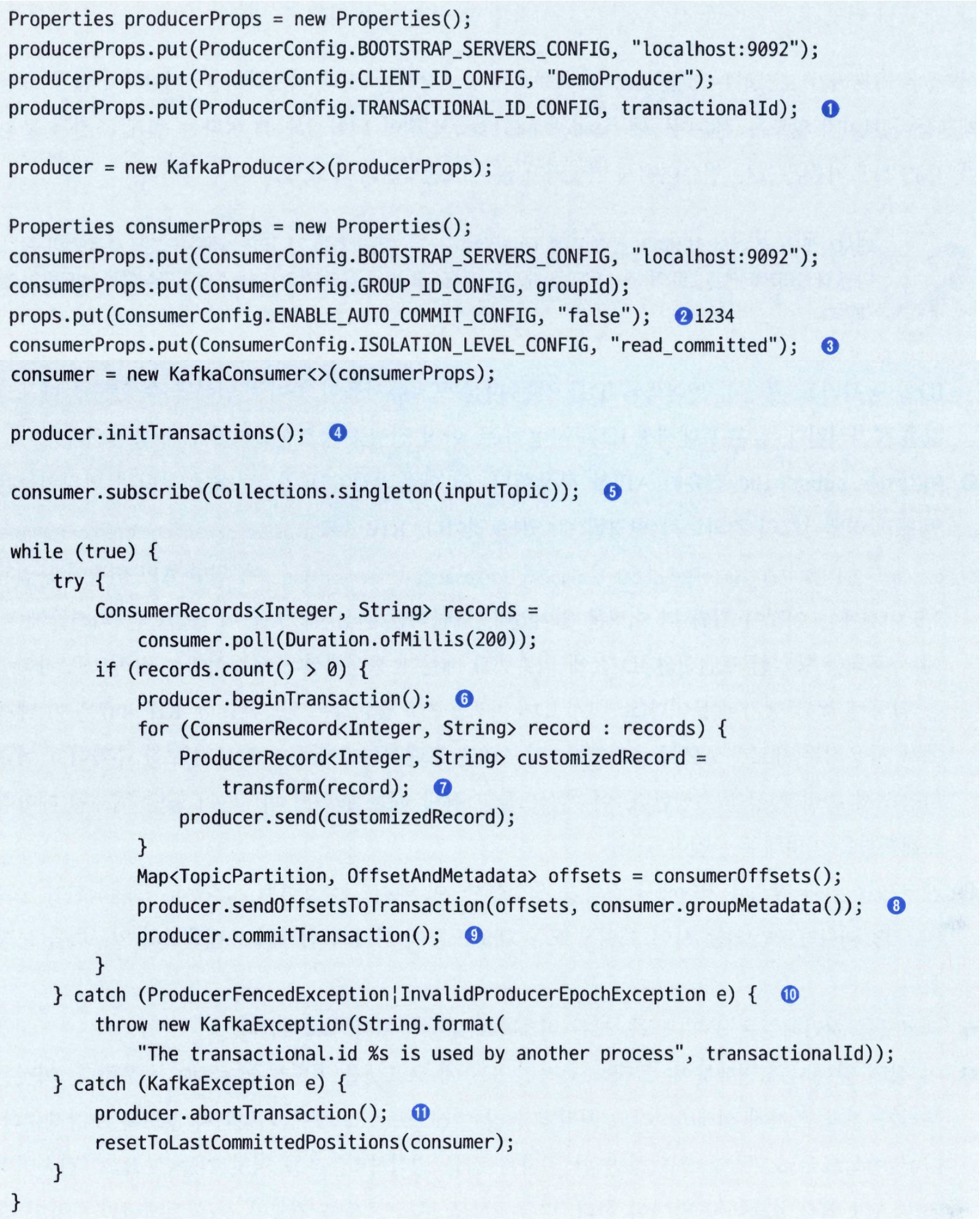 보통 프로듀서와 차이점: transactoinal.id 설정이 잡혀있고, initTransactions()를 호출해서 초기화해준다.