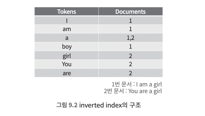 - 토큰을 기준으로 저장된 문서를 아래와 같이 저장하는데 이것을 inverted index라고 부른다.