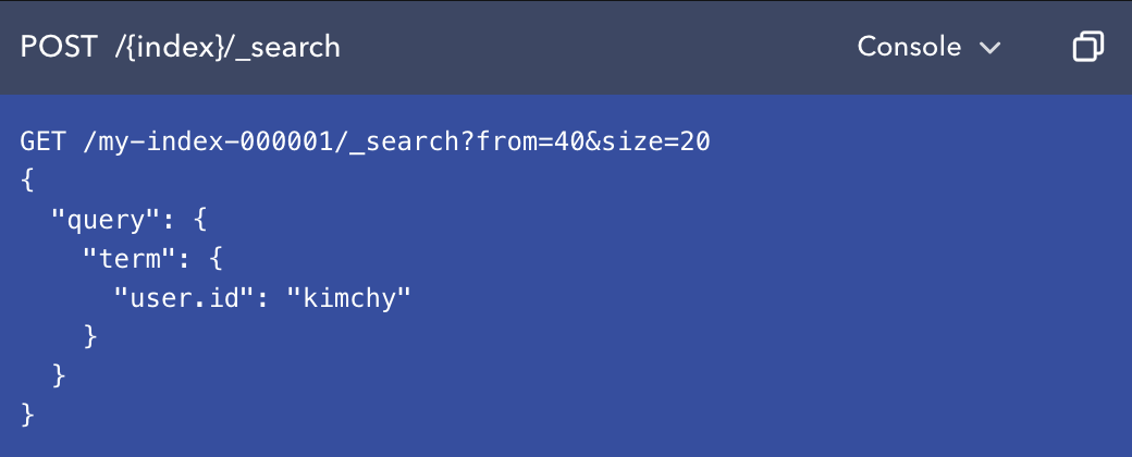 - 검색을 하기 위해서는 아래와 같이 POST 요청으로 쿼리를 보낼 수 있다.
