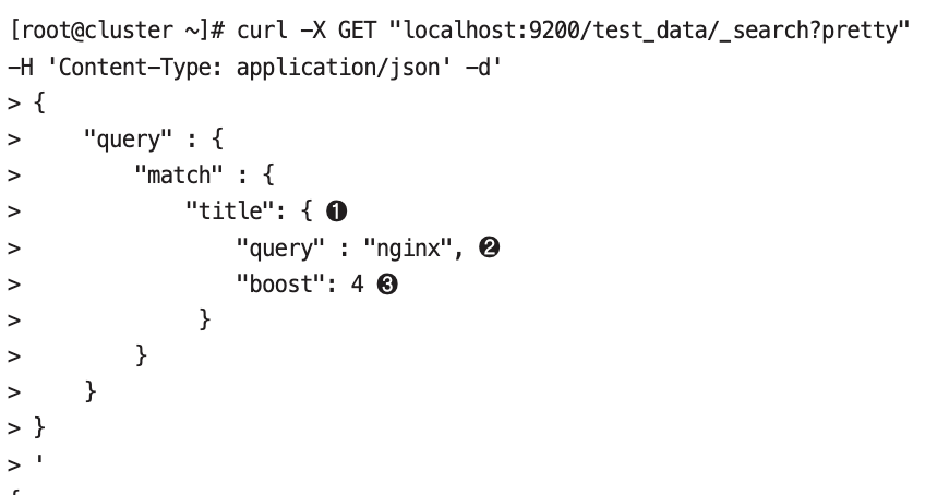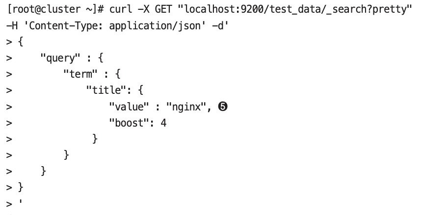 옵션에 설정된 값을 곱한 값이 스코어로 지정딘다.- match 쿼리를 사용할 때는 query 옵션을 사용하고, term 쿼리르 사용할 때는 value 옵션을 사용해야된다.