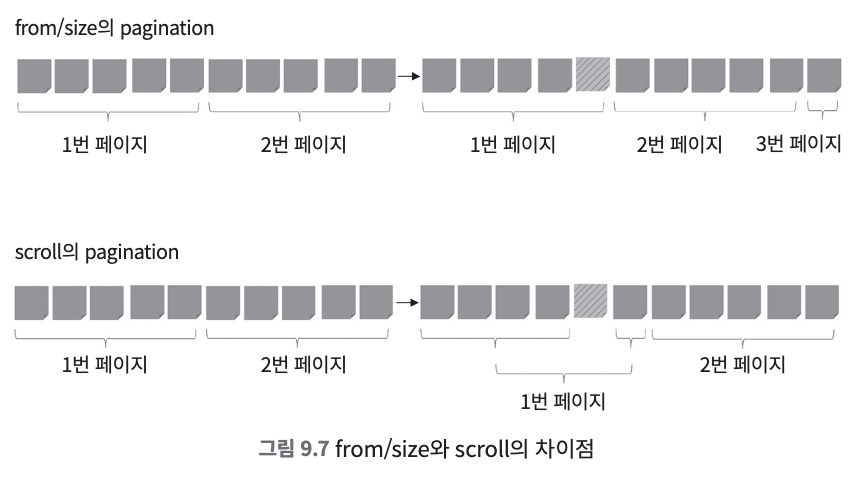 옵션을 사용하면 새로운 문서가 인입된다고 해도 scroll id가 유지되는 동안에는 검색 결과가 바뀌지 않는다. 그래서 scroll 옵션은 검색 결과가 동일하게 유지되어야 하는 paginzation, 혹은 대량의 배치 작업에 주로 활용한다.Scroll_id