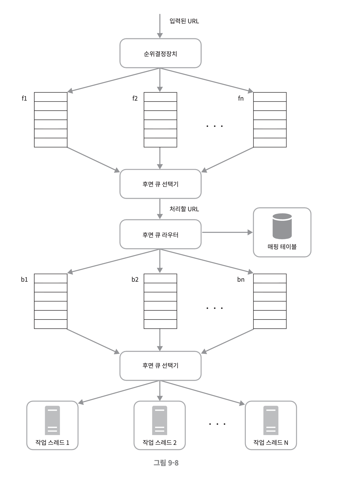 - 순위결정장치: URL을 입력으로 받아 우선순위를 게산한다.
