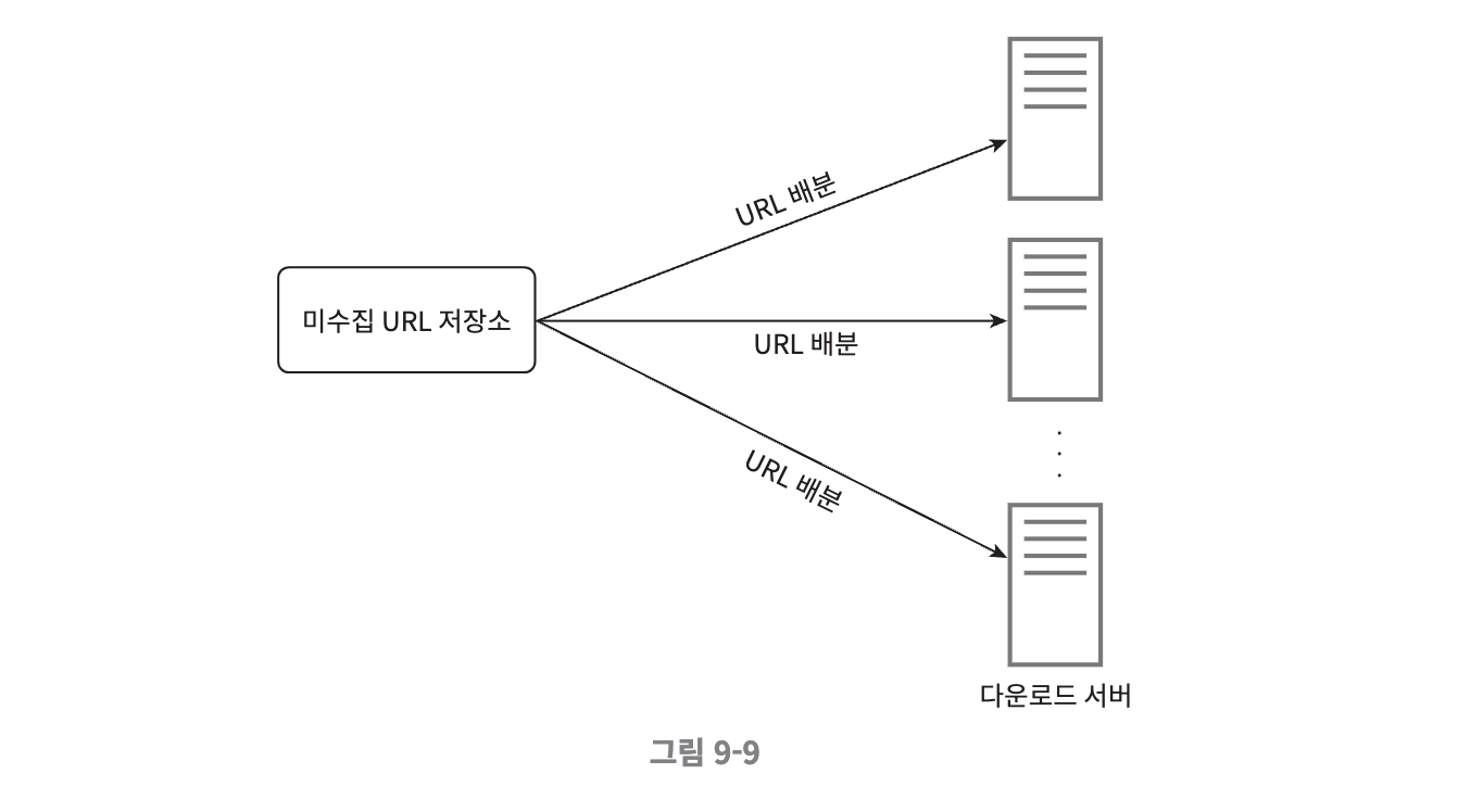 - 웹 크롤러는 상태를 (1) 다운로드할 URL, (2) 도운로드된 URL 두 가지로 나눠 관리한다.
